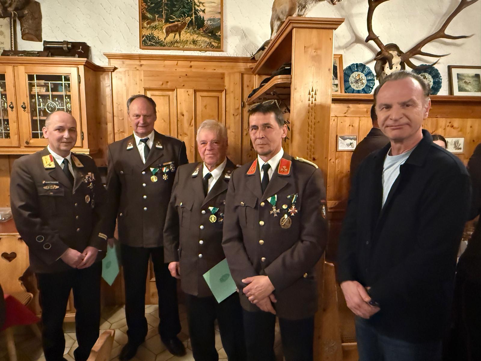 Für ihre langjährige Treue zur Feuerwehr wurden E-HLM d.F. Franz Rappel sowie HLM d.F. Norbert Bernold für 60 Jahre Feuerwehrmitgliedschaft geehrt.